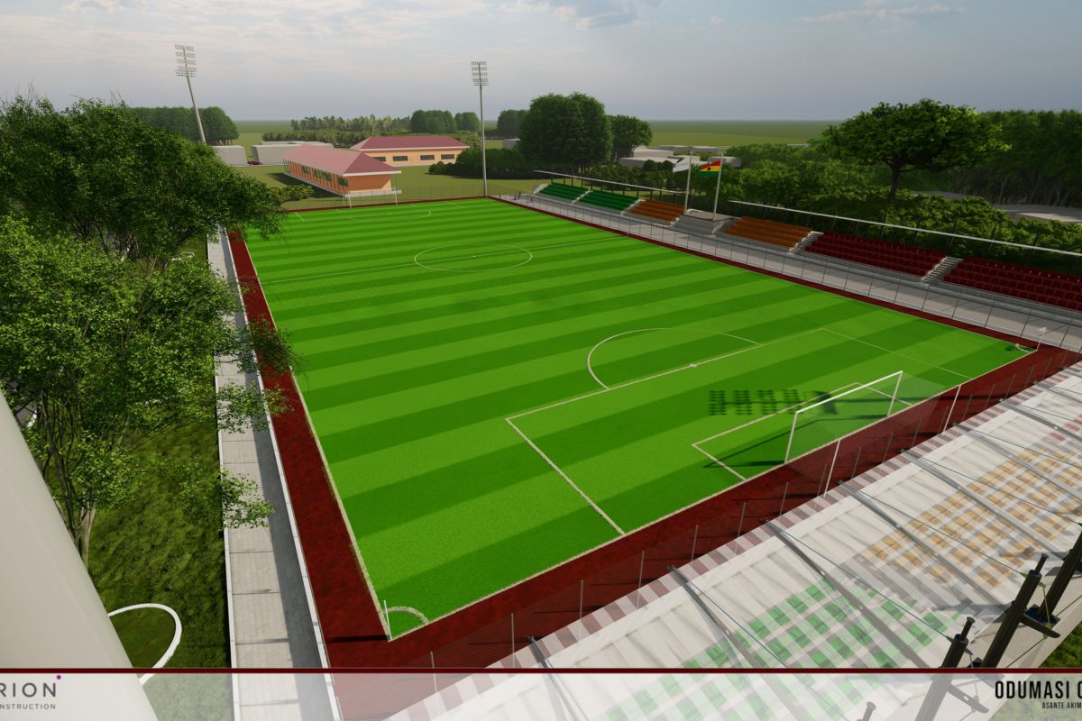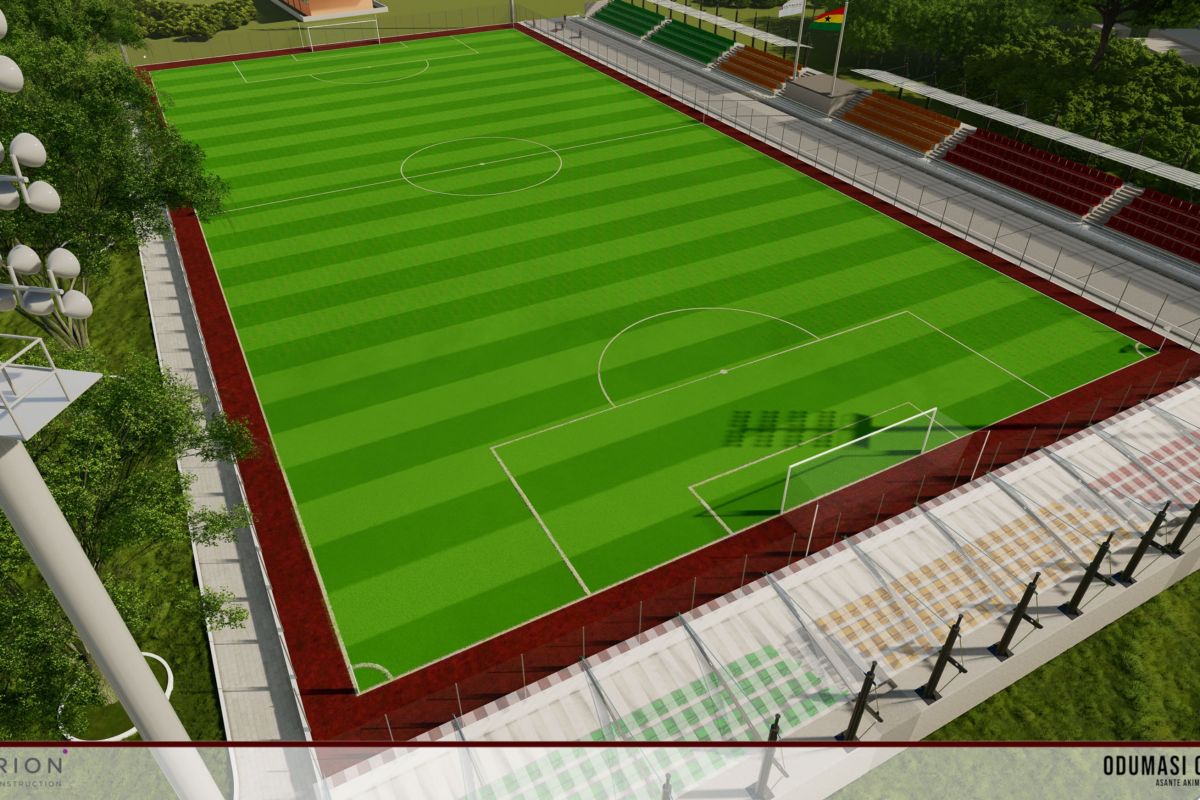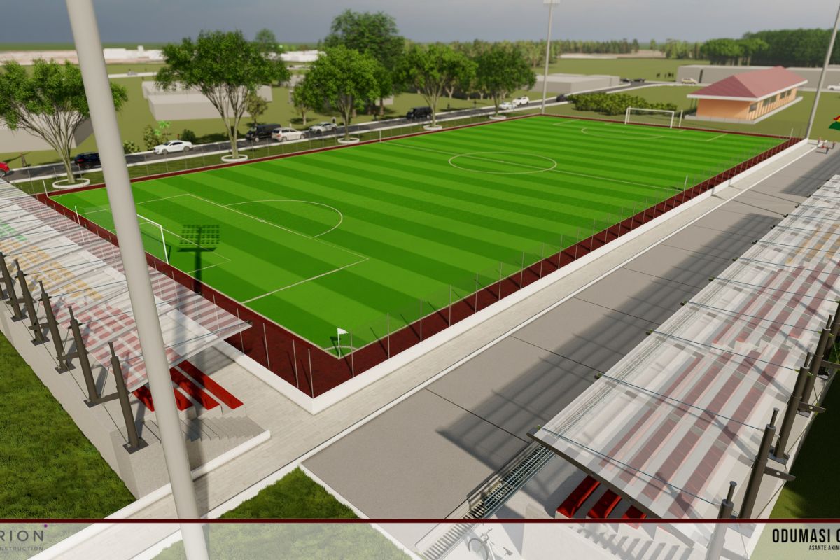 Installation of artificial grass/turf soccer field with wire fence